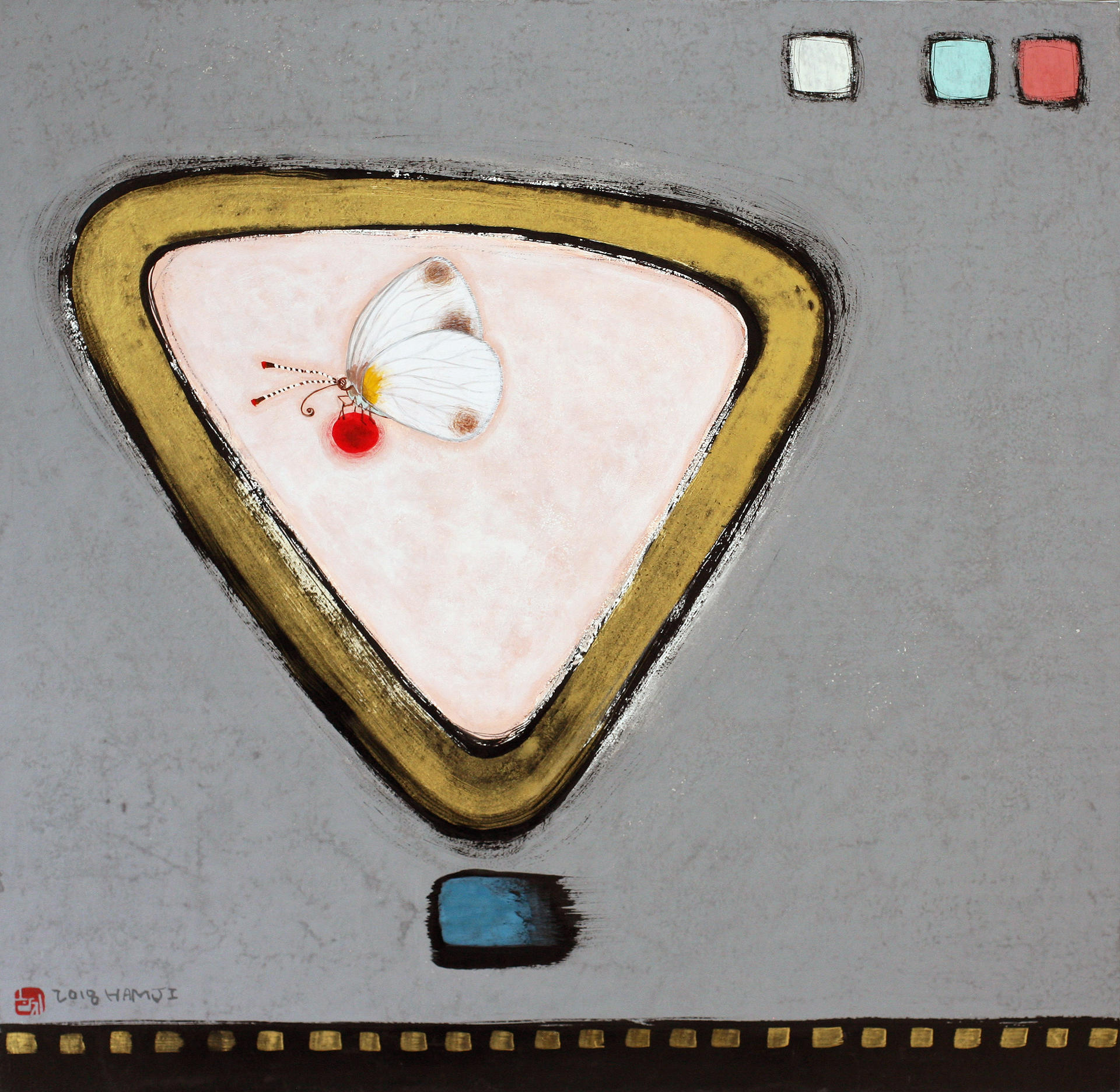 이해#43, 삼합장지에 분채, 50*50cm, 2018